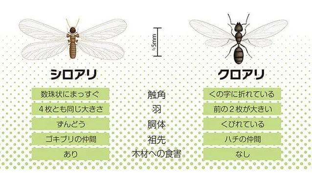羽アリを見かけたけど黒アリなのかシロアリなのか分からない、というときは
